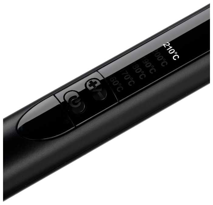 - Минимальная температура (160°C) безопасна для частого использования, максимальная (210°C) обеспечивает стойкие локоны.