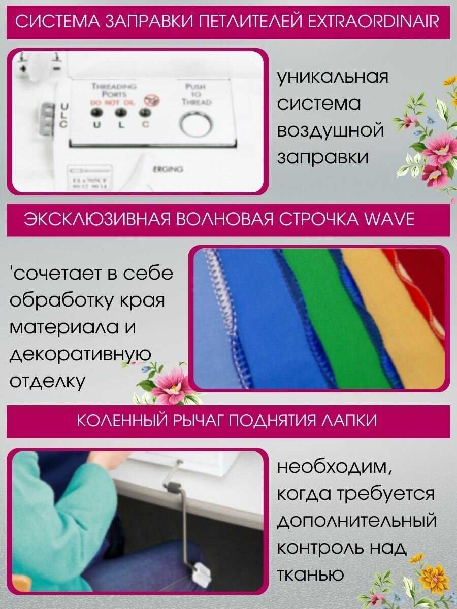 - + Шить одно удовольствие! Ровные строчки, автоматическая заправка нитей, очень красивая