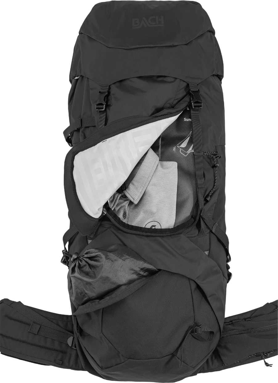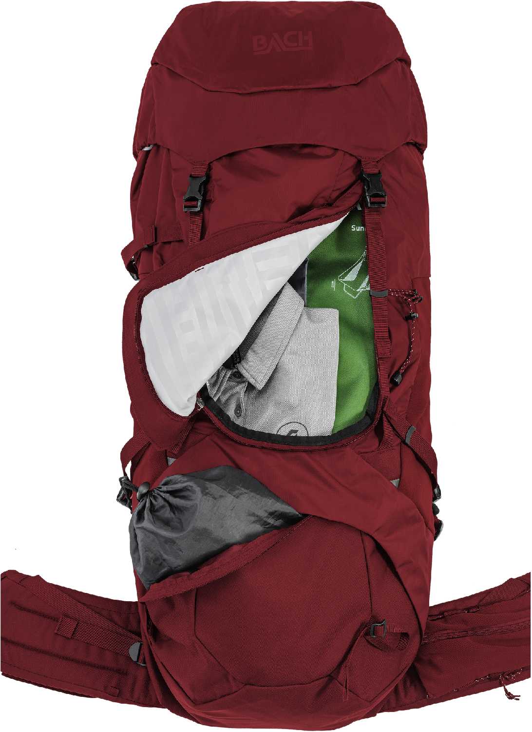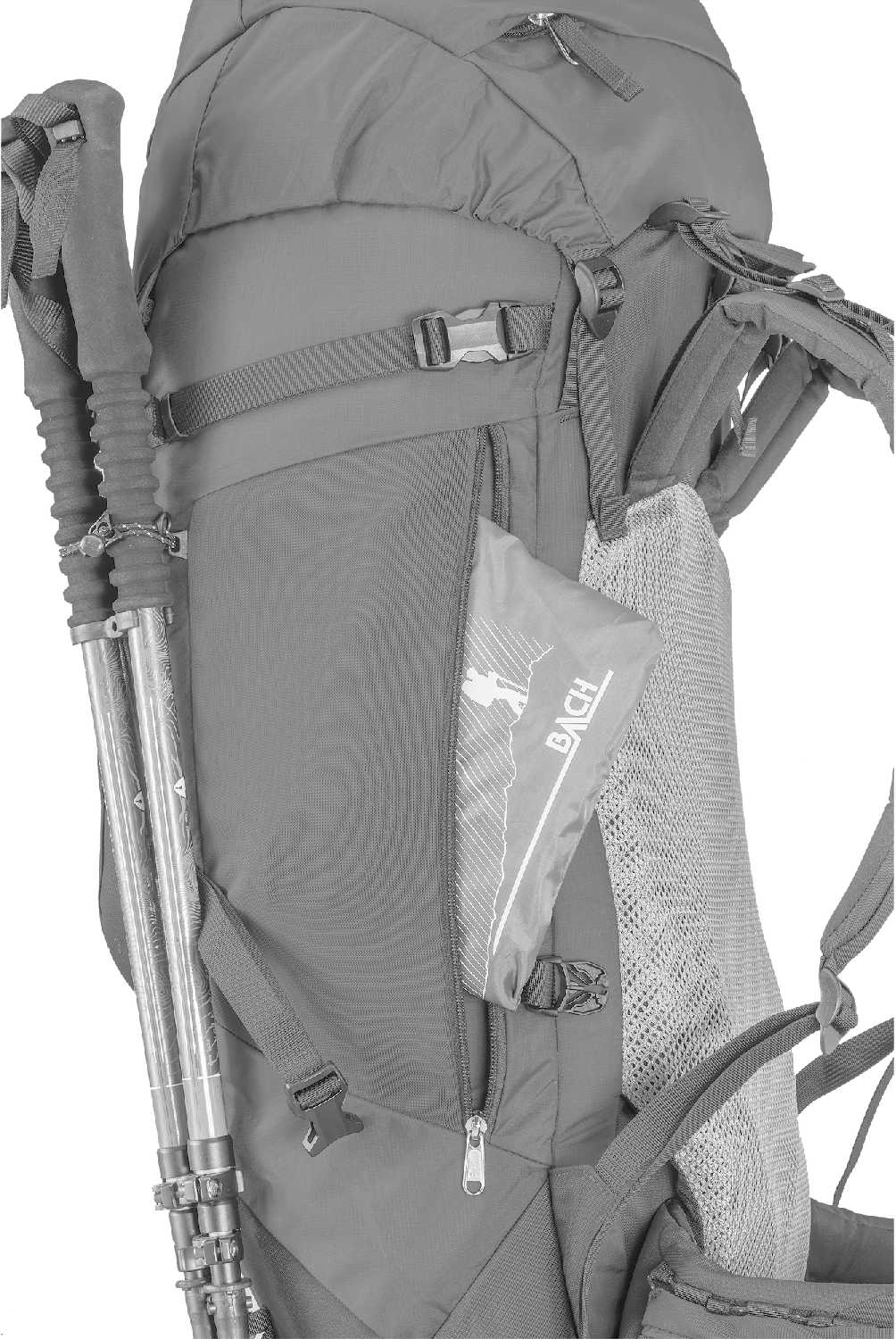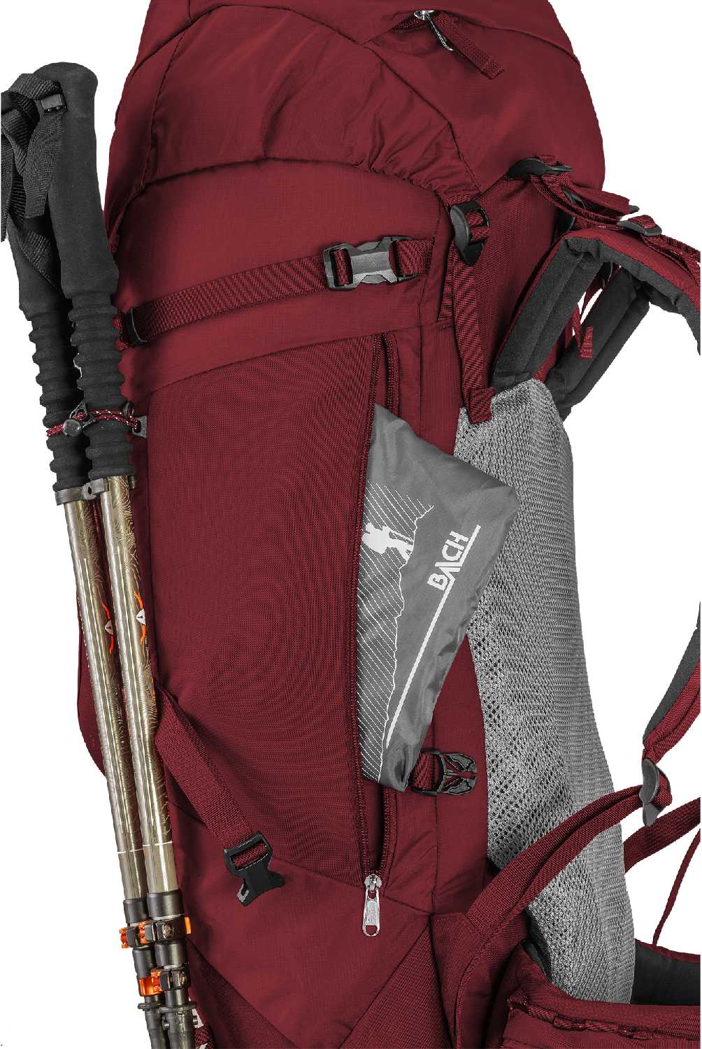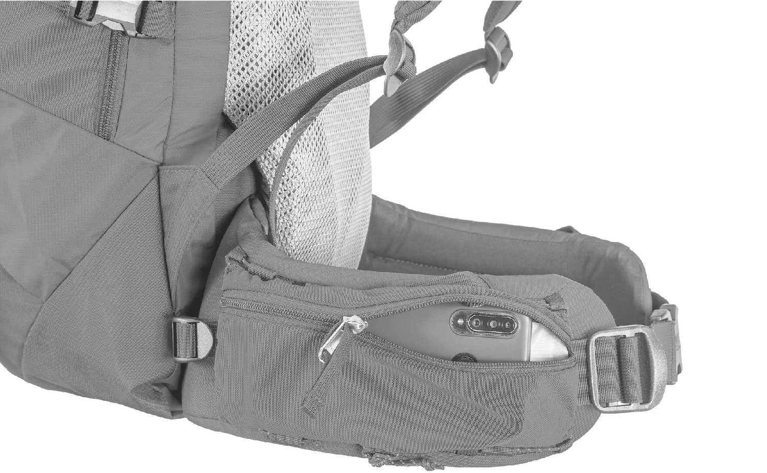 крепление треккинговых палок, подвесная петля, крепление карабина для ключей, крепление ледоруба, органайзер, отделение для ноутбука, карман для бутылки, карман для документов, карман для очков, потайной карман, карман для телефона, накидка от дождя