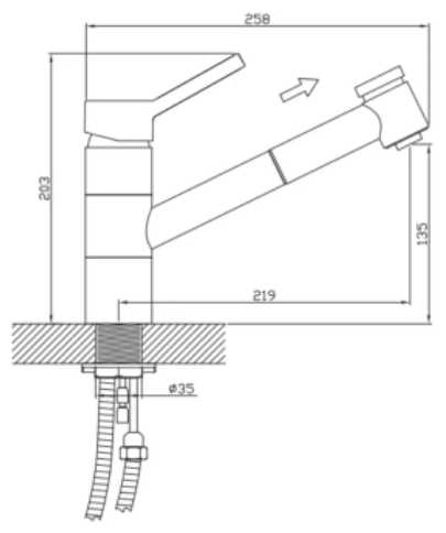 - тип излива: выдвижной