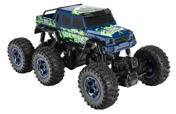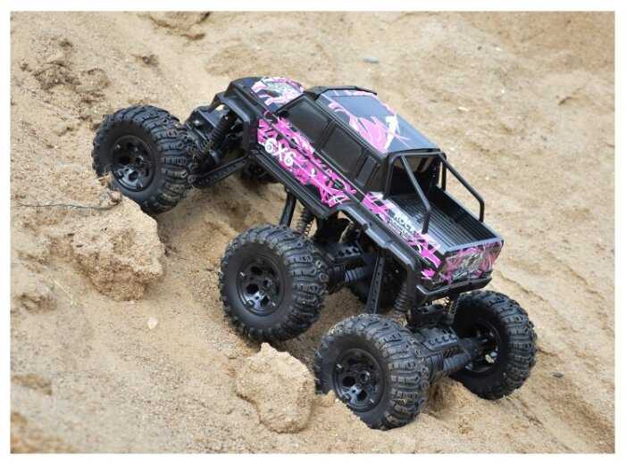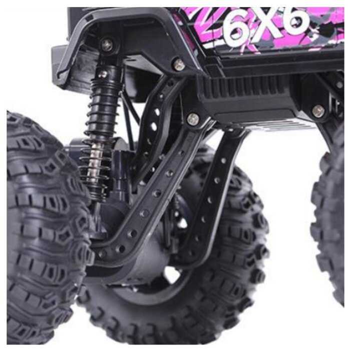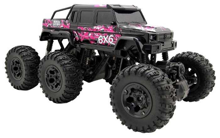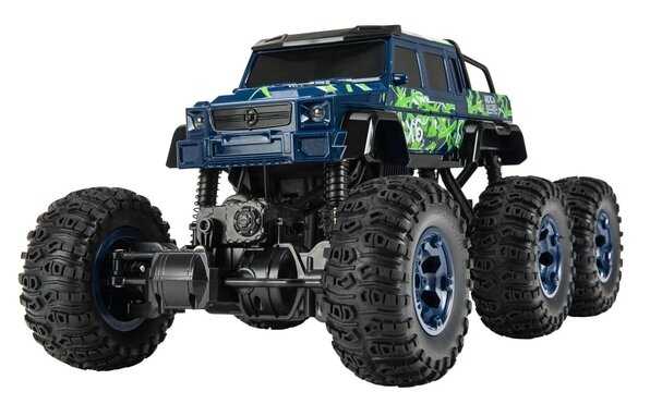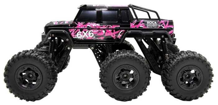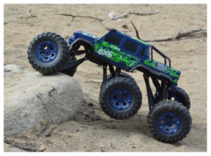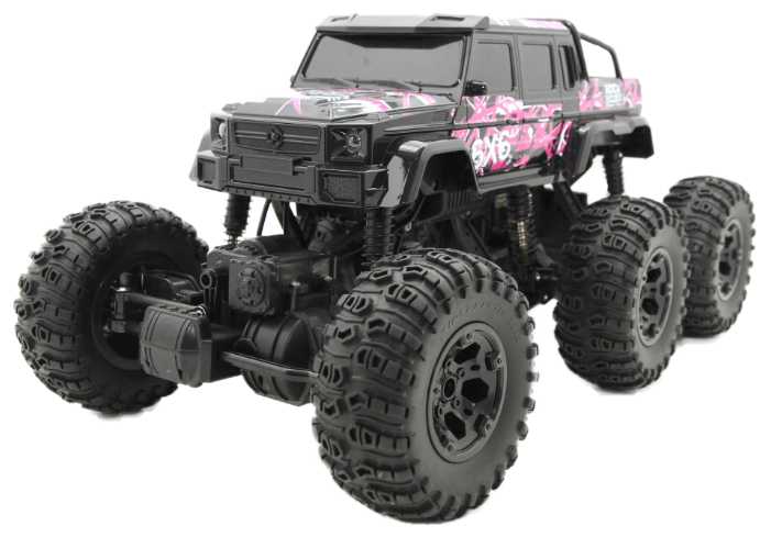 - + Отличная модель. Очень большая. Тяжёлая. Большие колёса. Колёса мягкие, проминаются на неровностях. Три моста. На каждый мост по двигателю. Максимально 10 км в час едет, не более. Передних и задних свесов вообще нет. Даже в вертикальную стенку модель упирается колёсами, не бамперами. Проходимость отличная. Уже год в пользовании. Всё работает, не сломалось. Пульт 2,4 ГГц, модель можно отпускать очень далеко, управление не теряется.