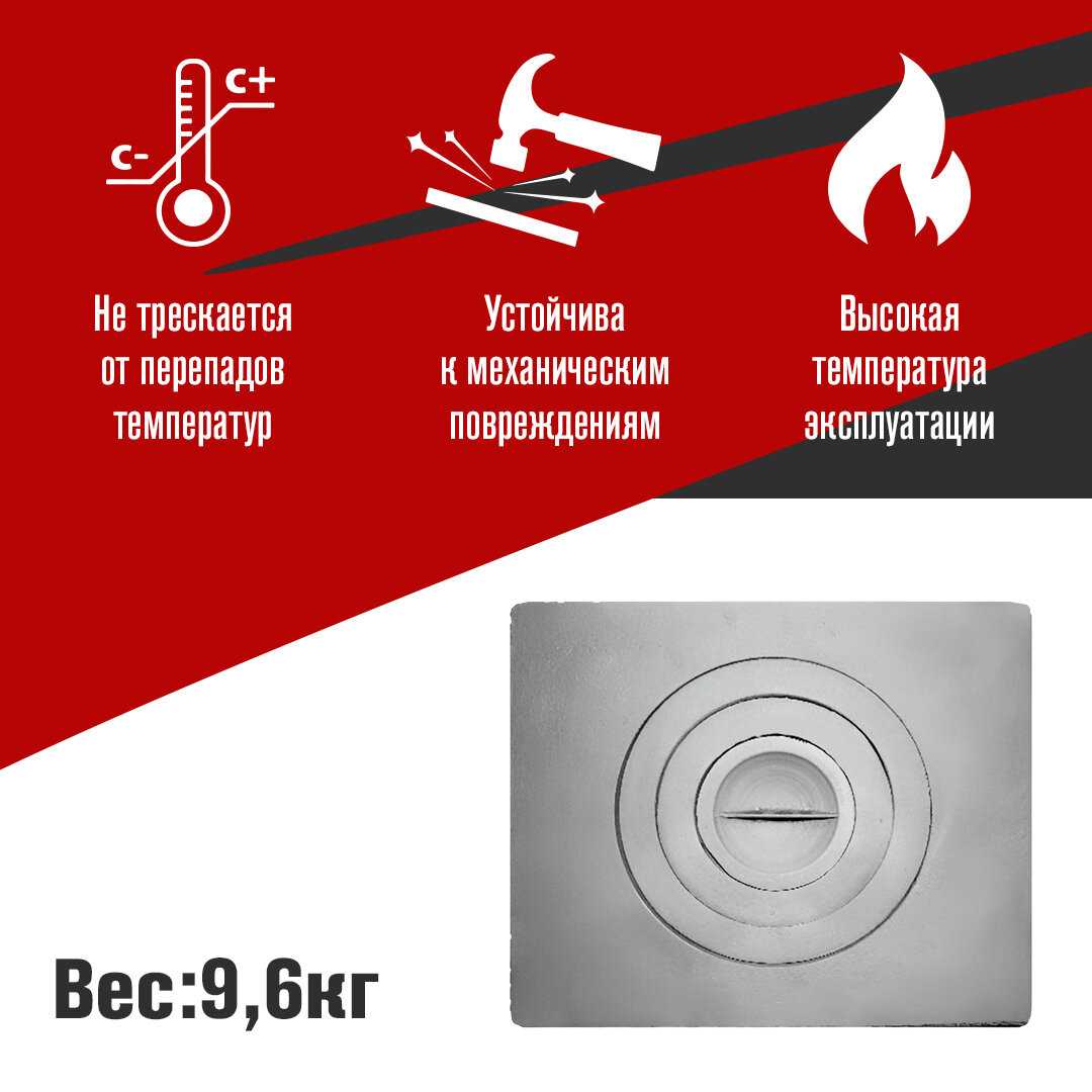 - + Хорошая плита, ржавчины почти нет. Щели между кольцами не большие. Размеры выдержаны.