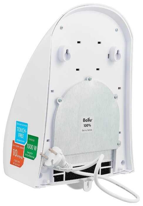- + Быстро сушит руки. Теплая подача воздуха. Без контактное управление.