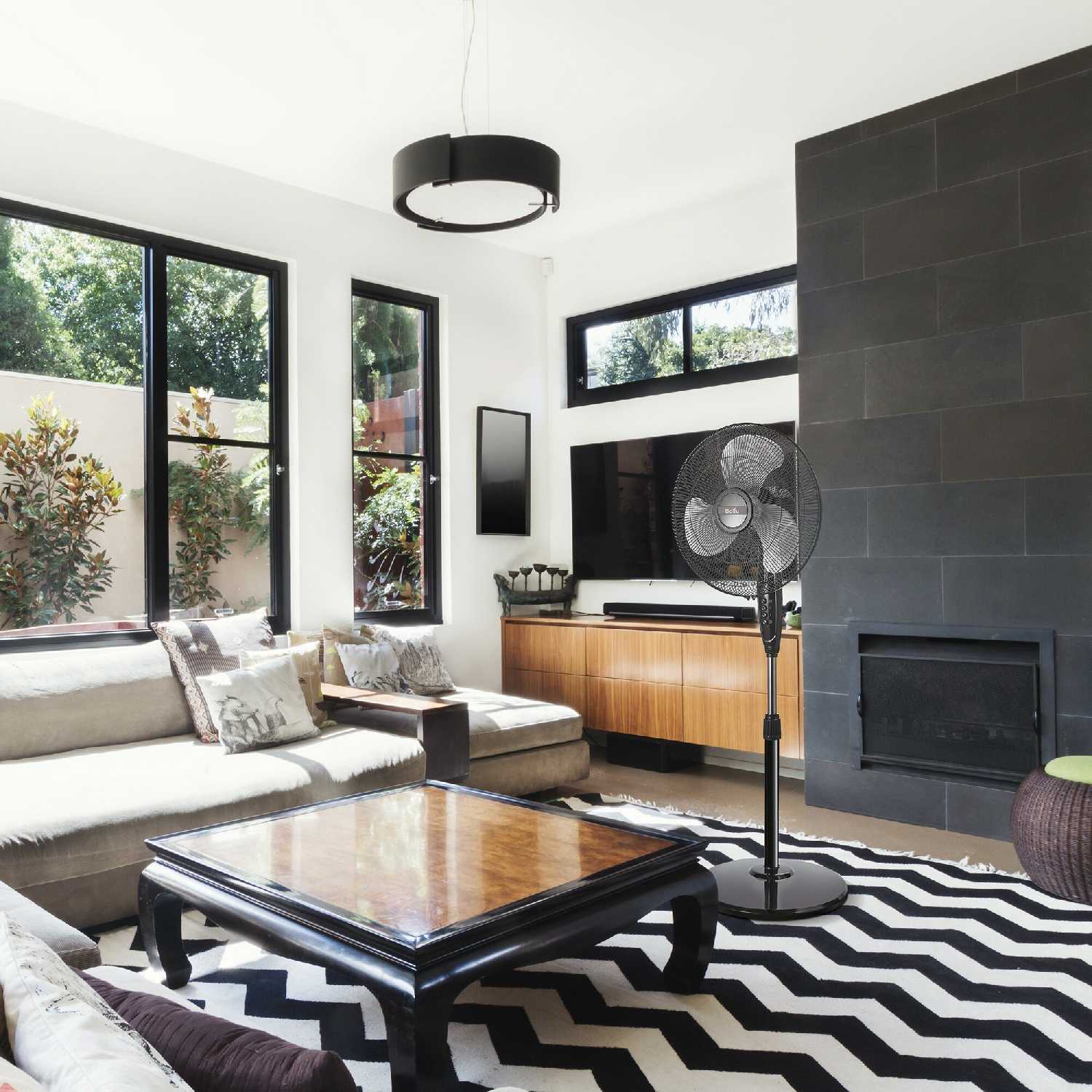 - Механизм автоматического вращения по горизонтали обеспечивает равномерное распределение воздушного потока по помещению.