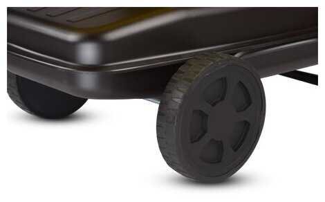 - Прочная колёсная база с резиновыми колёсами и ручкой обеспечивает лёгкое перемещение по неровным поверхностям, несмотря на вес устройства (около 40 кг).