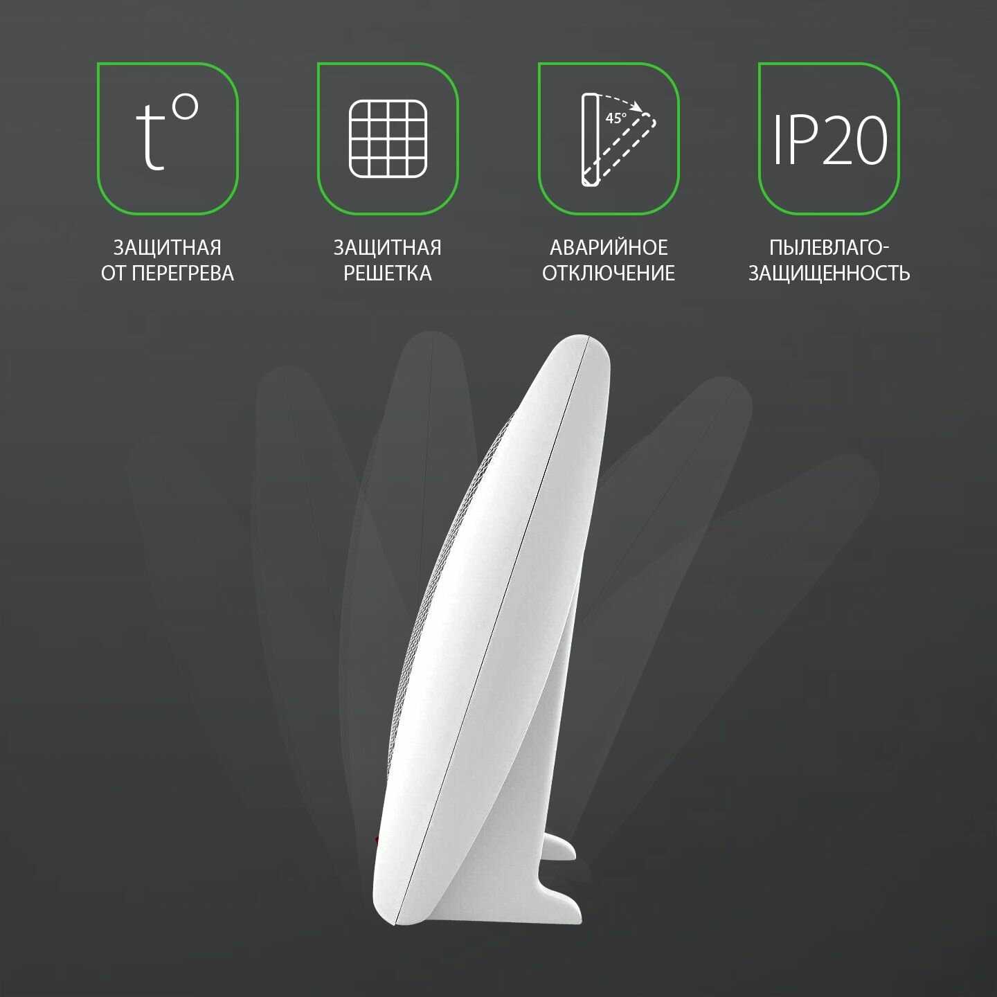 - Сильный воздушный поток от вентилятора обеспечивает локальный нагрев на расстоянии до 20 см, подходя для сушки белья или подогрева ног.