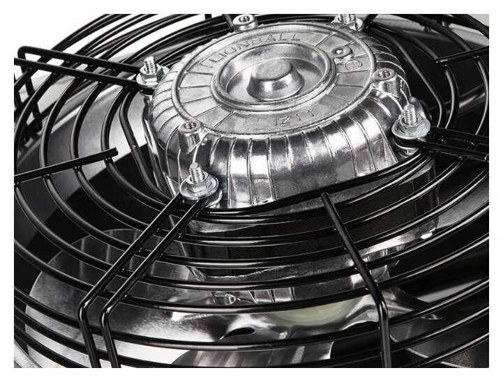 Антикоррозийное покрытие и металлический корпус устойчивы к влажности, конденсату или производственной пыли, что подтверждено эксплуатацией в гаражах и цехах. Равномерный поток воздуха не поднимает пыль с поверхностей. Устройство эффективно в малярных помещениях, где двери часто открыты. -