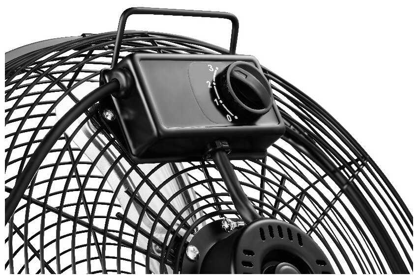 - + Железные лопасти, отличная крепка защита лопастей. Монтаж на стену, а при желании даже на потолок. Тихая работа даже на 3й скорости.