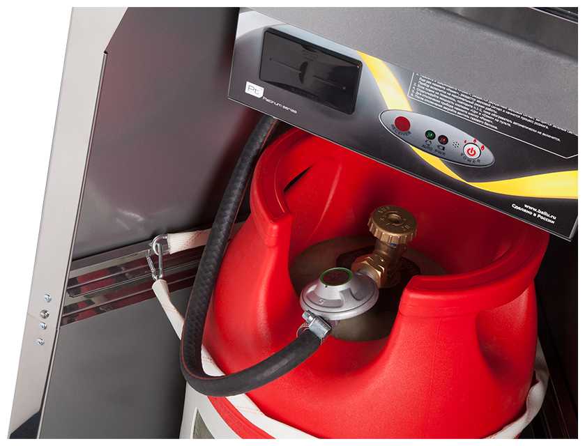 Процесс подключения баллона не вызывает сложностей даже у новичков. В комплекте поставляются качественный гибкий шланг и редуктор, которые не дубеют на морозе и обеспечивают герметичное соединение. Баллон надежно фиксируется внутри корпуса, что предотвращает его смещение при перемещении. Пользователи отмечают отсутствие запаха газа при правильном подключении и стабильную работу системы подачи топлива.