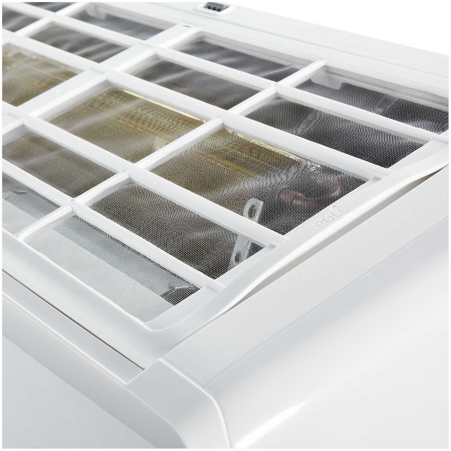 - Внутренний блок вписывается в интерьер, скрытый дисплей не отвлекает, сетка фильтра расположена сверху для легкой очистки.