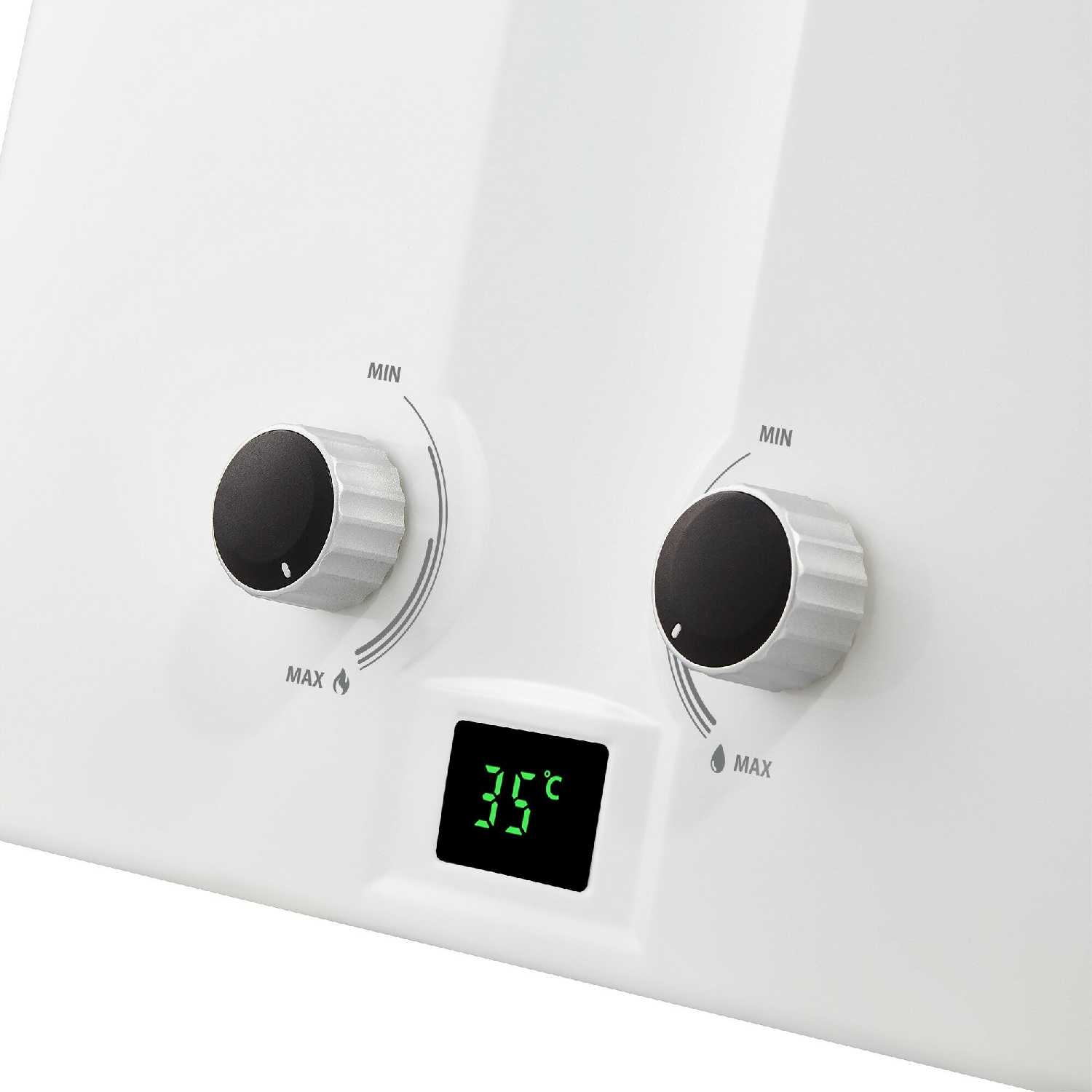 | Особенности : | возможность работы на сжиженном газе, дисплей, душевая лейка в комплекте, кран в комплекте, подключение к стандартной розетке, сухой ТЭН, термометр |