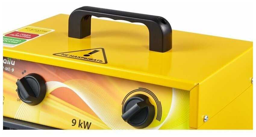 - Пушка на 9 кВт прогревает цех или склад за 5-7 минут до комфортной температуры, позволяя работать в футболке даже при сильных морозах.