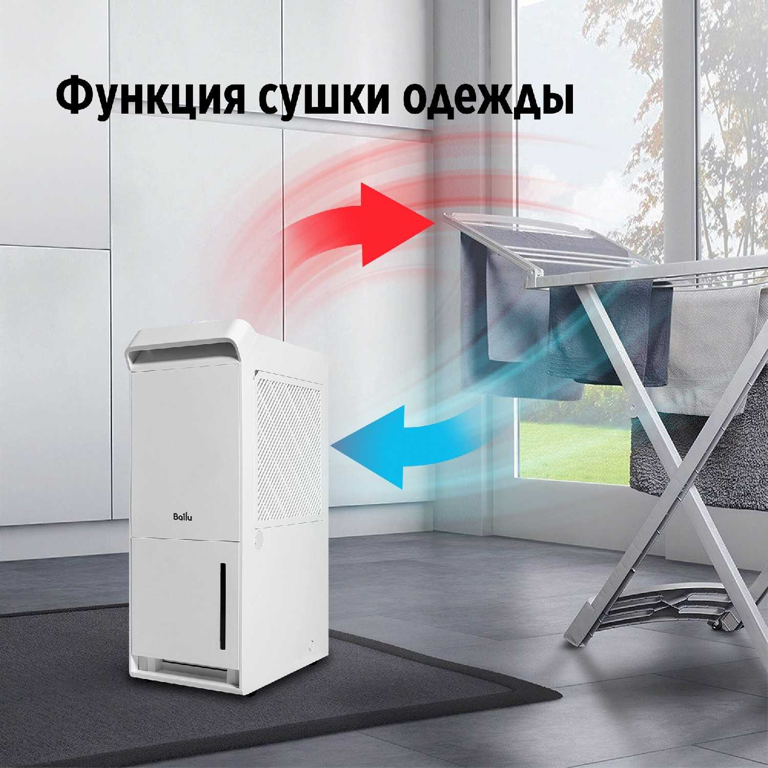 - Режим сушки белья активируется отдельно, ускоряя процесс до 4-5 часов в помещении до 40 м².