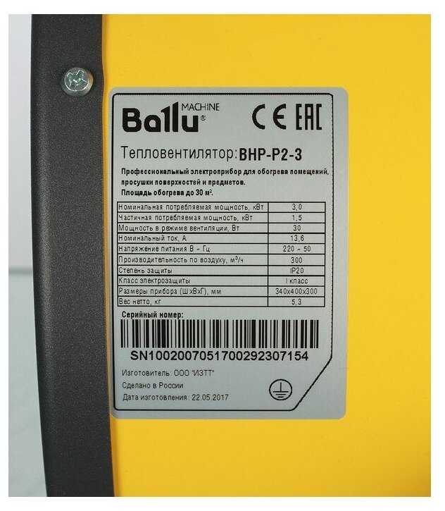 Характеристи Ballu P2-3