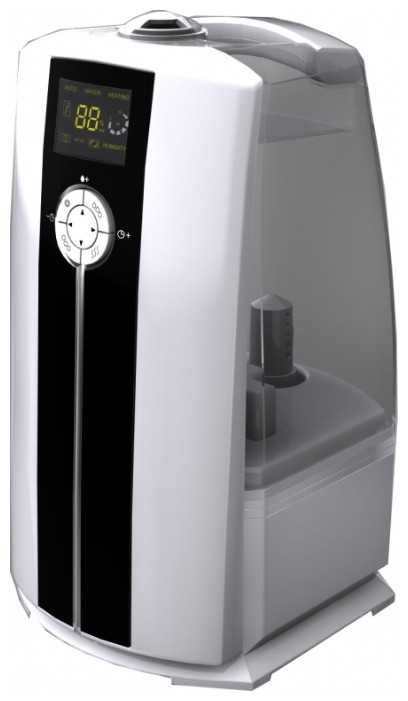 • + Аппарат имеет дисплей и электронное управление с возможностью задания режимов работы, что не доступно в аппаратах без мозгов. Он имеет довольно эффективно и быстро работающий гидрометр, а так же термометр. Возможность как задавать целевое значение влажности, так и автоматический режим, в котором аппарат сам определяет целевой уровень влажности в зависимости от окружающей температуры. По мере приближения к целевому уровню снижает степень генерации тумана (имеет 3 уровня). Греет воду и имеет режим генерации тёплого пара, что очень гуд, чтоб влажный воздух не стелился по полу, а более равномерно распеределялся по объёму комнаты.
