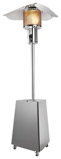 Конструкция оборудована четырьмя прочными колесами, что делает перемещение обогревателя по ровным поверхностям, таким как плитка, асфальт или деревянный настил, легким и удобным. Пользователи отмечают, что благодаря колесам они без усилий перекатывают устройство в нужную зону — из беседки на веранду или между столиками в кафе. Однако для перемещения по траве или неровному грунту колеса могут быть не столь эффективны. Устойчивое основание и массивный каркас предотвращают случайное опрокидывание во время движения. -
