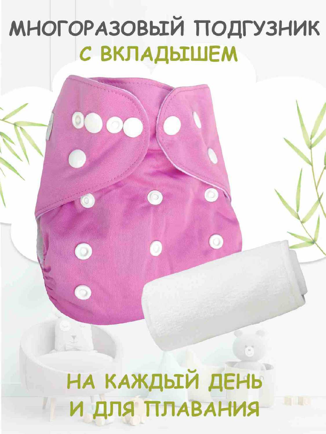 Отзывы о Многоразовый подгузник "Бамбуковый мишка" Классика Розовый + 1 вкладыш в комплекте микрофибра