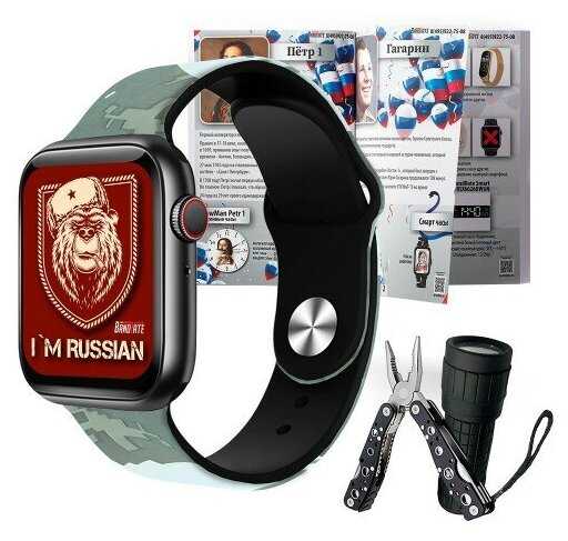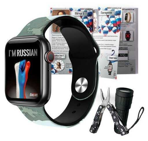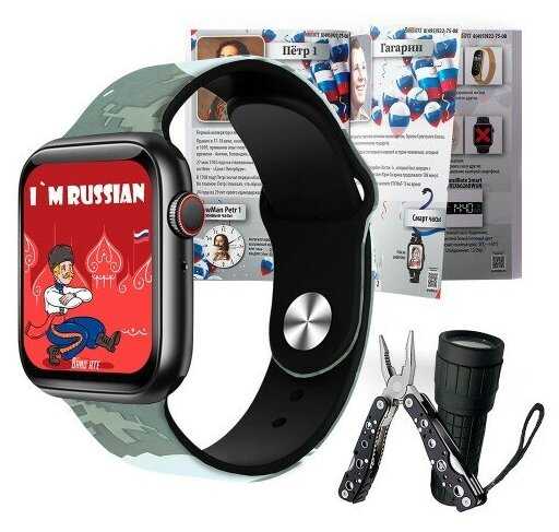 Думали, что подарить руководителю на юбилей компании. Решили остановиться на смарт-часах. Стали выбирать. Когда увидели данный набор, поняли, что это то, что нам нужно. Набор понравился, часы стильные, патриотические темы экрана, хаки-расцветка браслета. Нож прочный и качественный. Фонарик удобный, светит ярко. Наш подарок пришелся по душе, руководитель часы ежедневно носит.