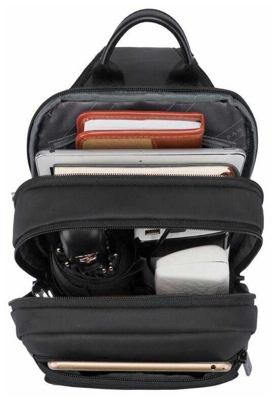 - + отличная , даже очень вместительная )) ношу с удовольствием..главное удобно , и то, что на ремне есть замок защёлка , можно отстегнуть легко.. и есть мягкая спинка , так что при падении ноутбук или планшет не треснутся )