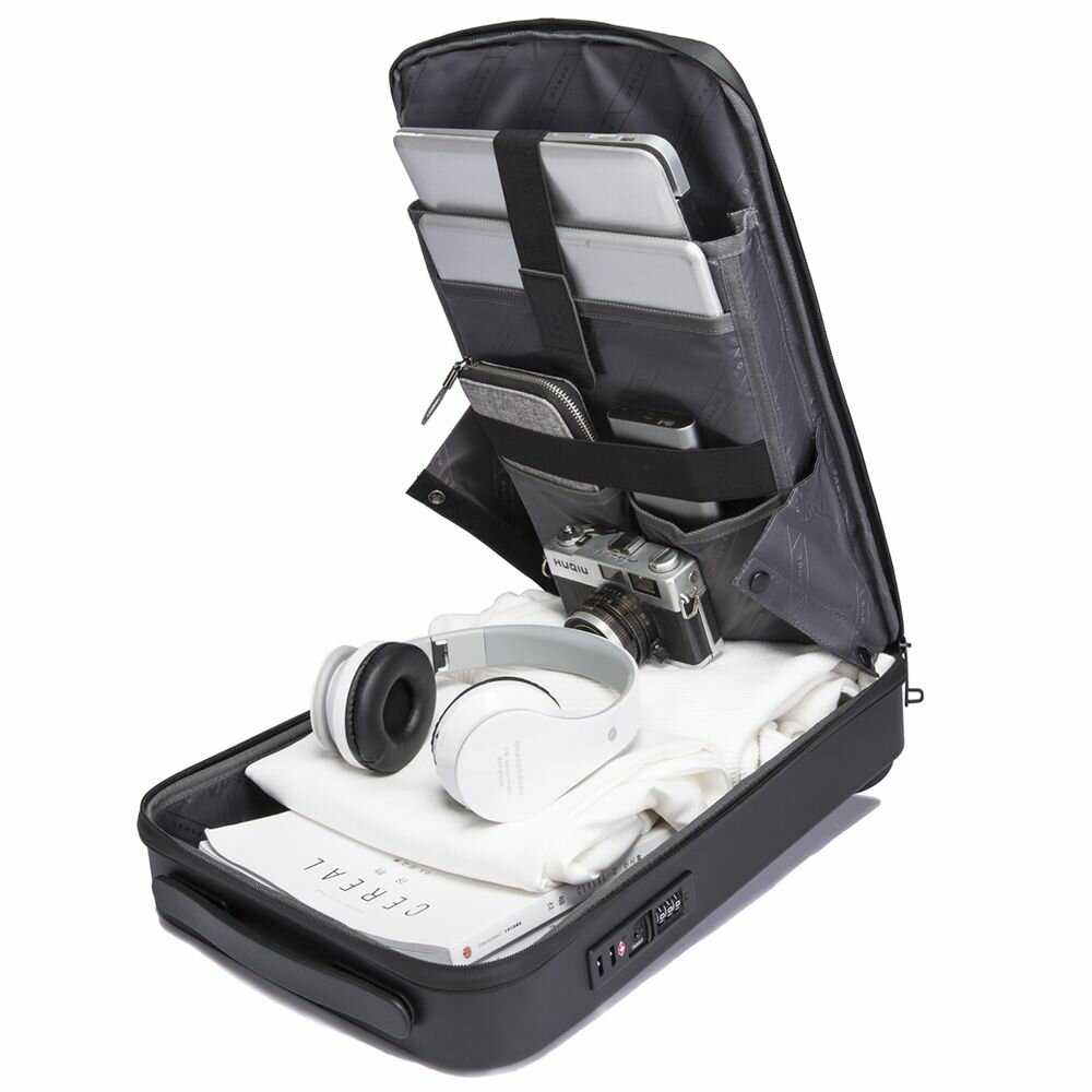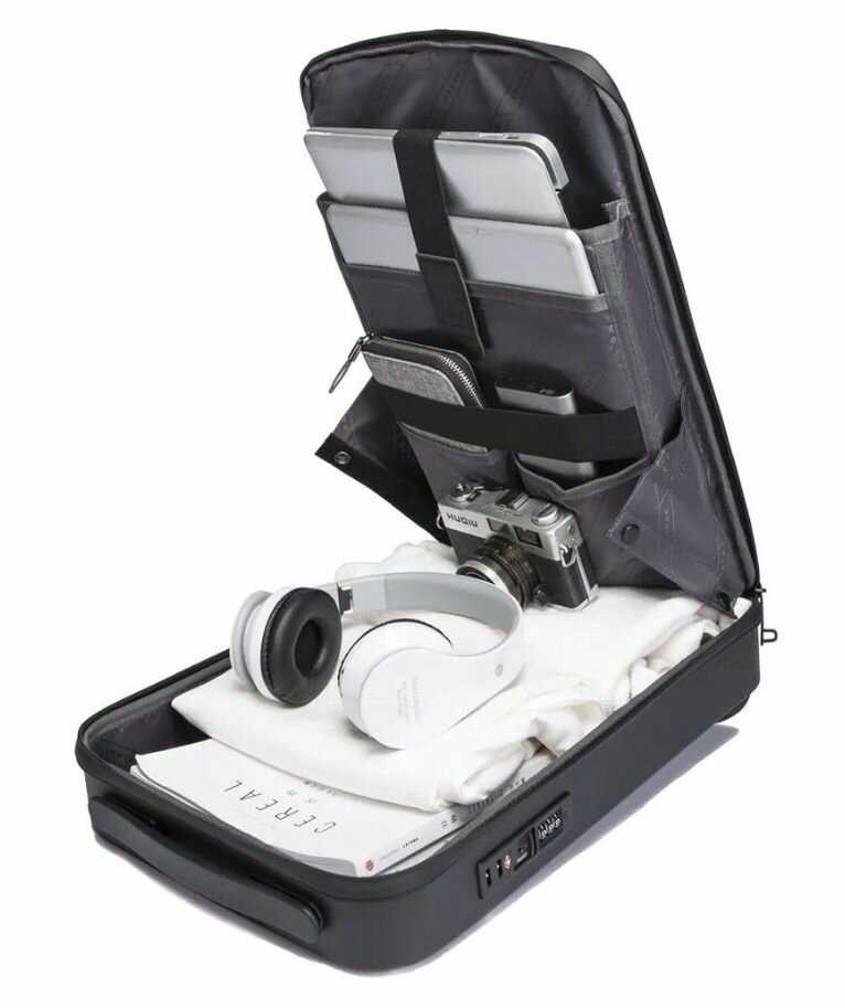 - + Отличная штука, хорошее качество, устойчив к царапинам (использую аккуратно, но пару раз задевал твердые поверхности и казалось повреждения неизбежны, но пластик остался невредим), хороший замок, порадовали резиночки которые удерживают лямки для регулировки длинны не позволяя им болтаться, достаточно вместительный(ноутбук, кофта, зонт, pawer bank, ключи, документы, телефон, з/у для ноутбука и телефона, мышка и наушники вместе помещаются без проблем), смотрится отлично.