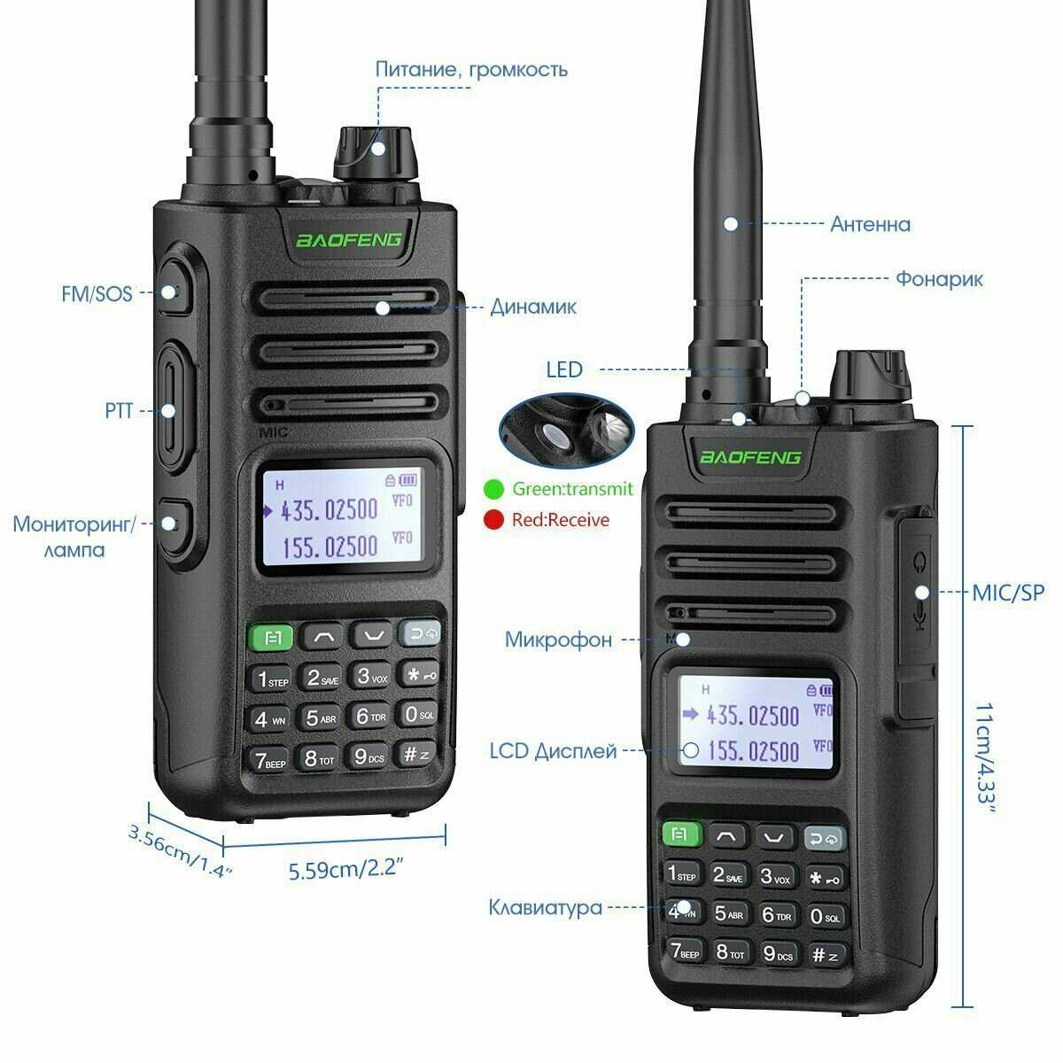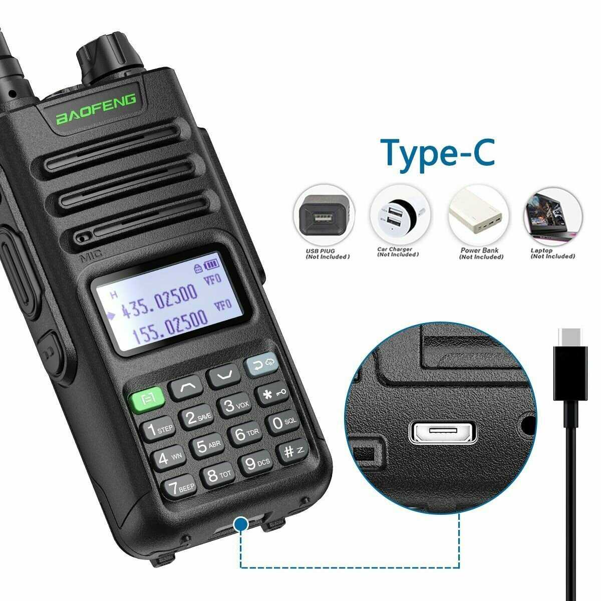 - + Ёмкий аккумулятор, насчитал 2700 мАч. Более мощный передатчик(но не настолько мощный как заявлено) USB-C зарядный разъем - Очень упрощает обращение с радиостанцией в машине.