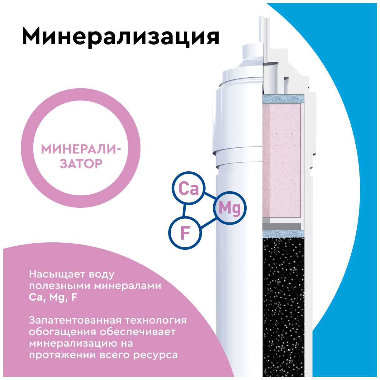 Хороший фильтр с минерализацией для мягкой воды. Кокосовый уголь с обработкой серебром против бактерий.