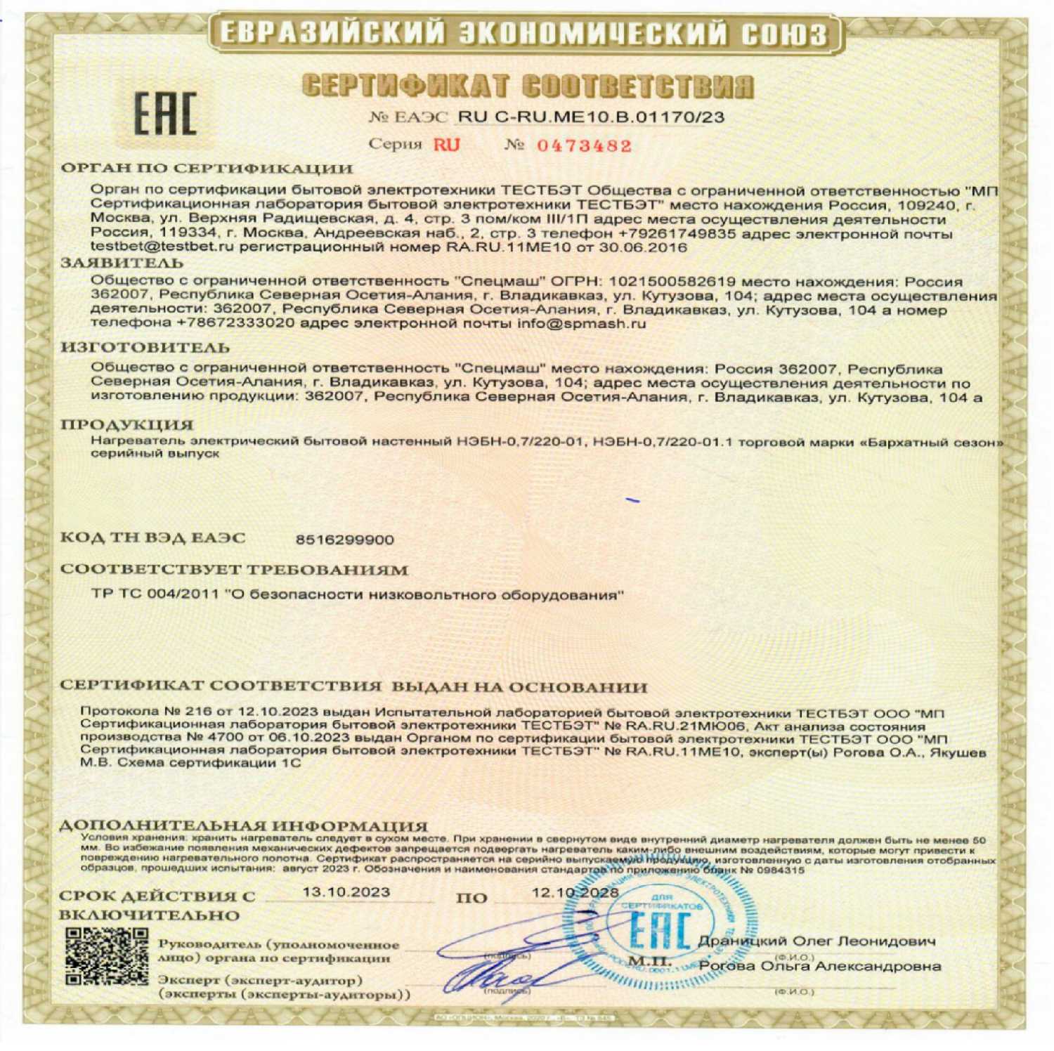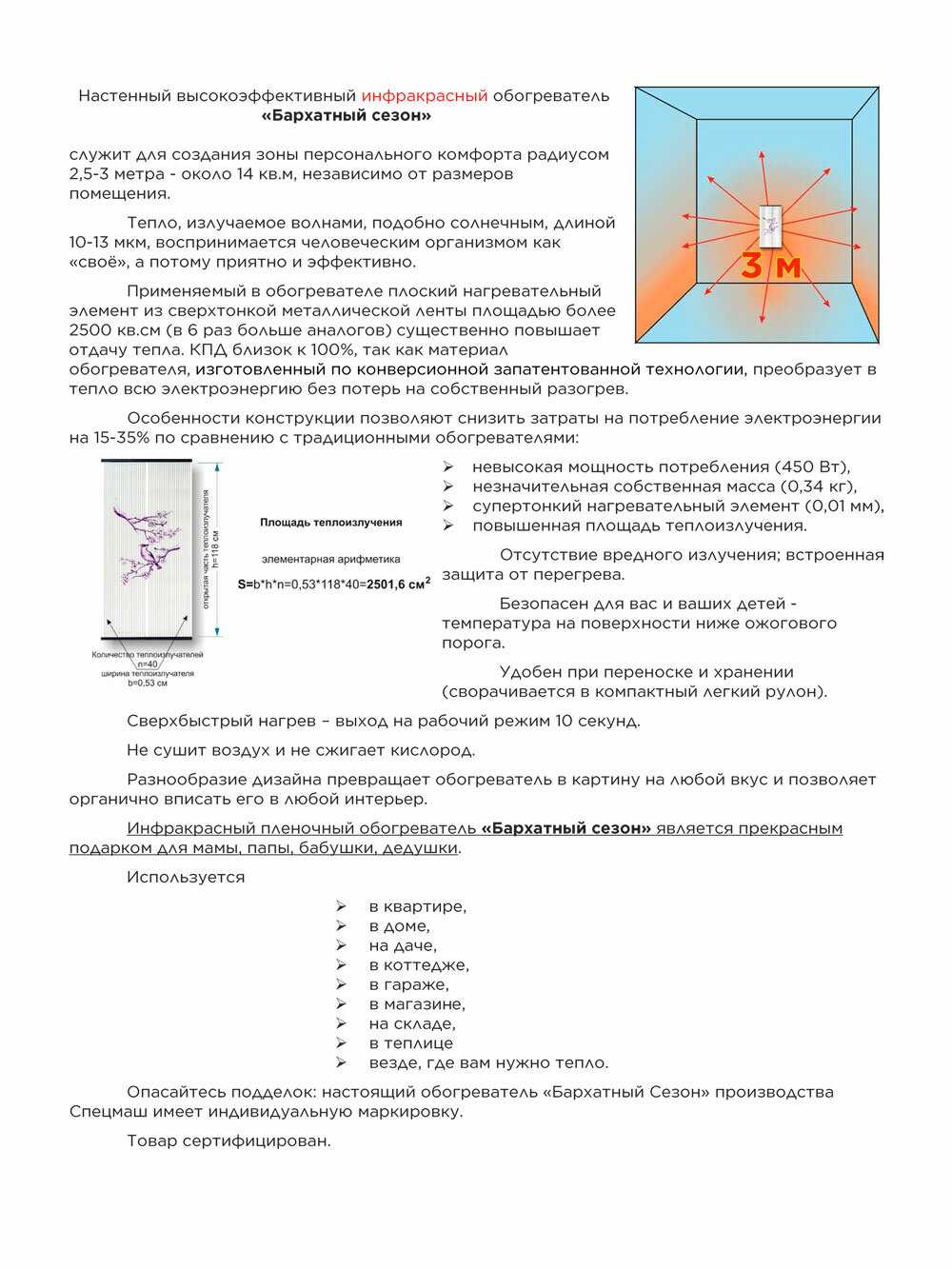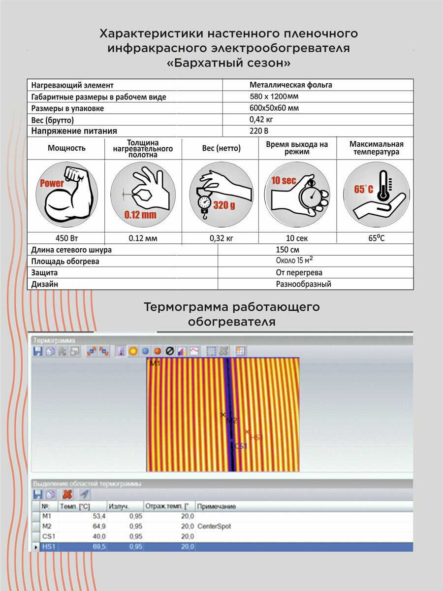 Тип обогревателя : | инфракрасный пленочный |