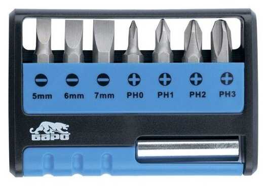 Дополнительная информация : | карманный пластиковый кейс - 1 шт, биты 25 мм - 7 шт: РН0 РН1 РН2 РН3 SL5 SL6 L7, магнитный битодержатель - 1 шт |
