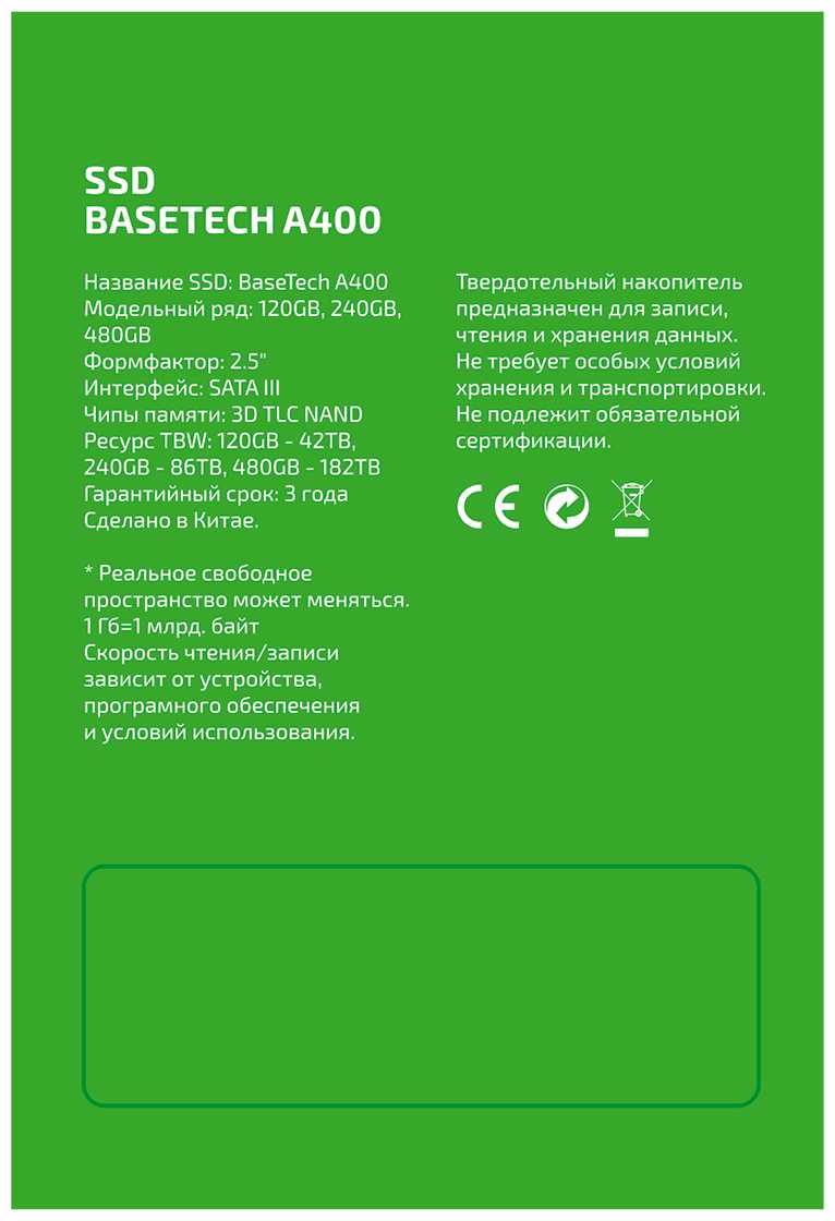 34 отзывов пользователей o Basetech A400 (SSDBTA400240G)