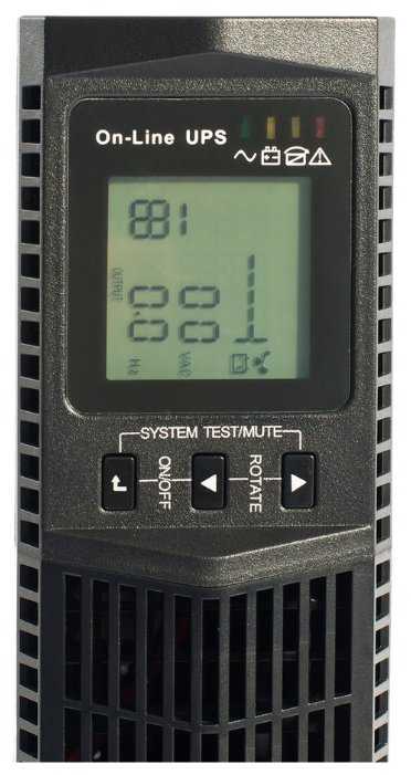 | Особенности : | автоматический By-pass, возможность замены батарей, возможность установки в стойку, горячая замена батарей, звуковая сигнализация, поддержка SNMP, подключение дополнительных батарей, фильтрация помех, холодный старт |