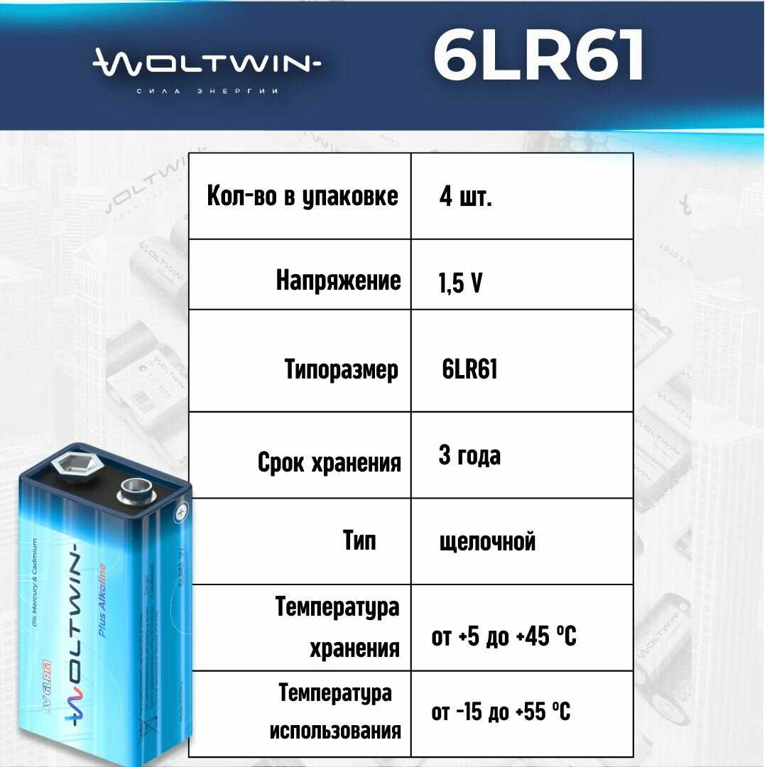 WOLTWIN Батарейка алкалиновая 6F22 (6LR61)