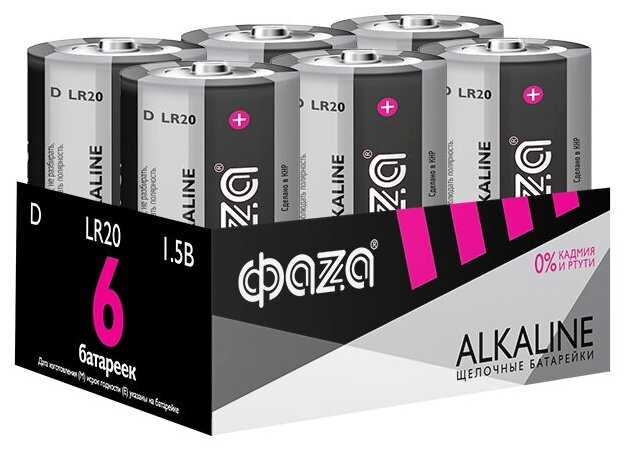ФАZA Батарейки алкалиновые ФАZА типоразмера "D" 6 шт. LR20A-P6