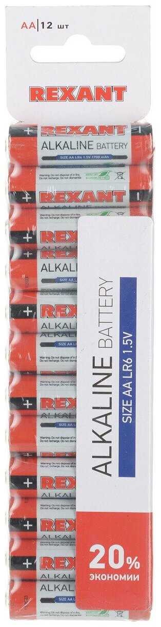REXANT тип AA (LR6), 1,5В, 12 шт