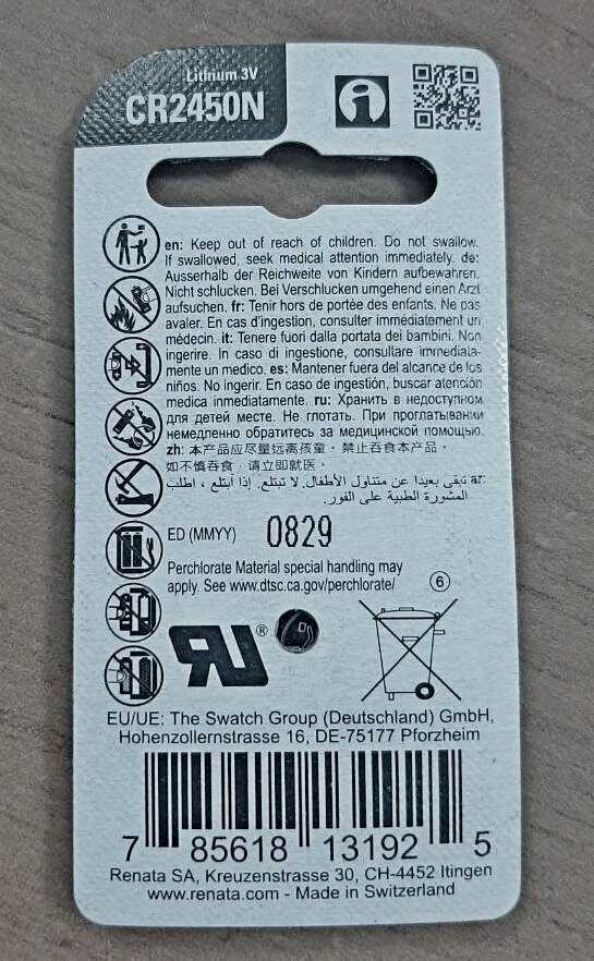 - типоразмер производителя: CR2450