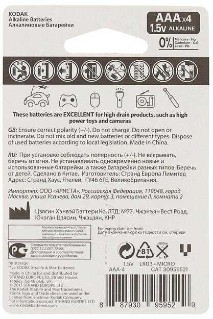 5.8/10 балловKodak XTRALIFE LR03 60 colour box [K3A-60] (60/1200/38400)