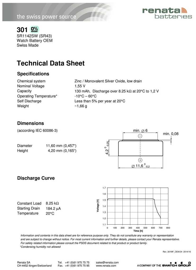 RENATTA Батарейка RENATA R 301, SR43SW 1 шт.