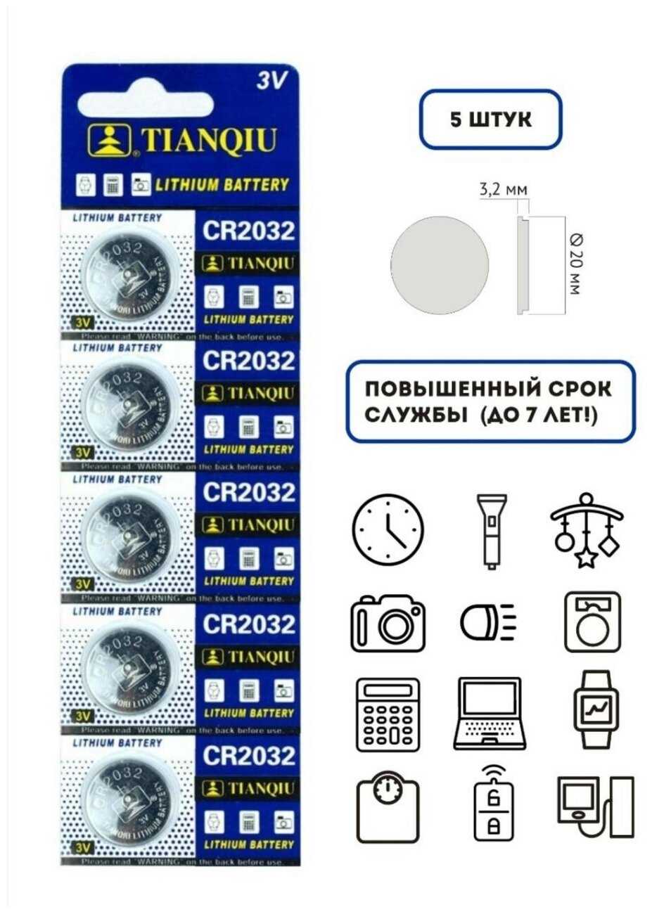 TIANQIU Батарейки дисковые литиевые CR2032 (5шт)