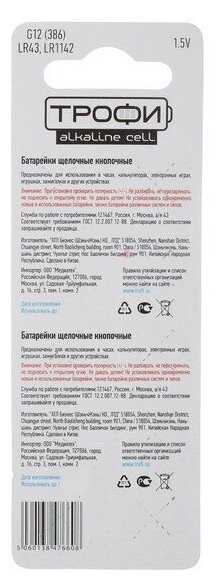 ТРОФИ Батарейки алкалиновые G7 (399)