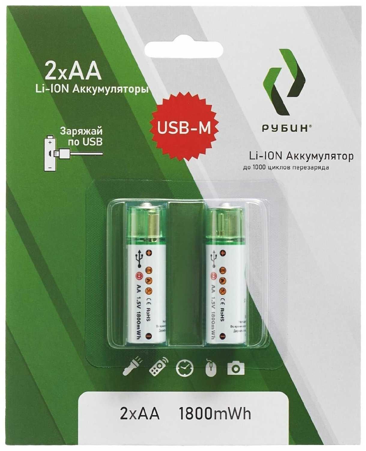 Рубин Аккумулятор LI-ION рубин АА 1,5 В 1800mWh USB