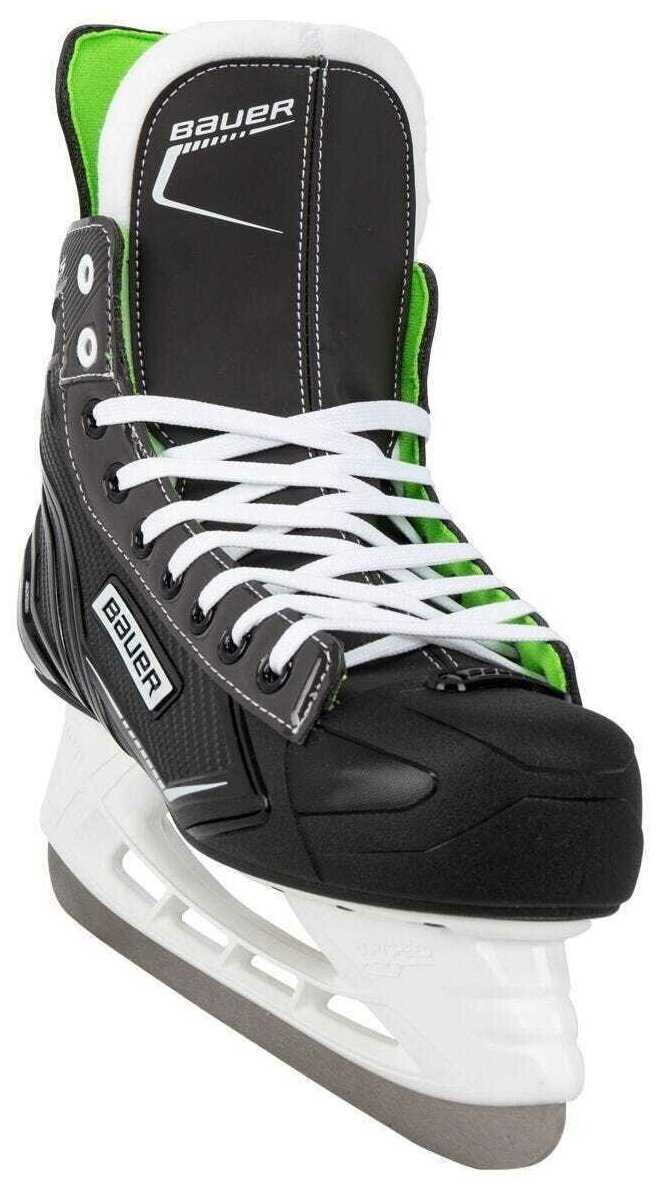 Размер ноги 44.5, я купил 11размер. При примерке на махровый носок были слегка велики. А вот на два носка сели отлично,ничего нигде не жмет. Те кто катался на коньках других производителей, будут немного удивлены. До Бауэр, у меня были ССМ. Бауэр значительно ниже, что может беспокоить и давать чувство неуверенности при катании. Но на самом деле нога держится четко. А самое главное и это была первая ошибка, это то, что я по привычке сильно затянул шнуровку и от этого стопы очень быстро стали ныть от боли. После ослабления шнуровки катать стало комфортно. Несколько минут катался на ослабленных коньках, затем немного затянул в голени и получил удовольствие. Шнурки нормально держат, не скользят. Лезвия нужно точить.