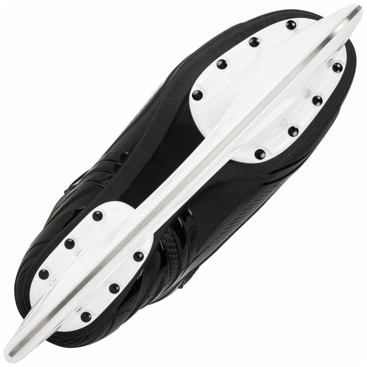 Лезвия из углеродистой стали не соответствуют заявленной износостойкости – заводская заточка с желобком стирается после 30-40 минут катания, требуя профессиональной правки перед первым использованием. При корректной заточке (радиус 9-13 мм) лезвия сохраняют остроту 8-10 часов на открытом льду при -15°C, обеспечивая уверенное выполнение разворотов и торможений. Кривизна профиля не влияет на управляемость, но ограничивает развитие высокой скорости: пользователи с массой тела свыше 85 кг отмечают "проседание" при мощном отталкивании по сравнению с Nordway Montreal. Облегченная конструкция (на 15-20% легче аналогов) улучшает маневренность в тесных зонах, однако уступает моделям Bauer Vapor в стабильности на прямых участках. Для лезвий характерен умеренный износ при контакте с бортами – деформаций не зафиксировано.