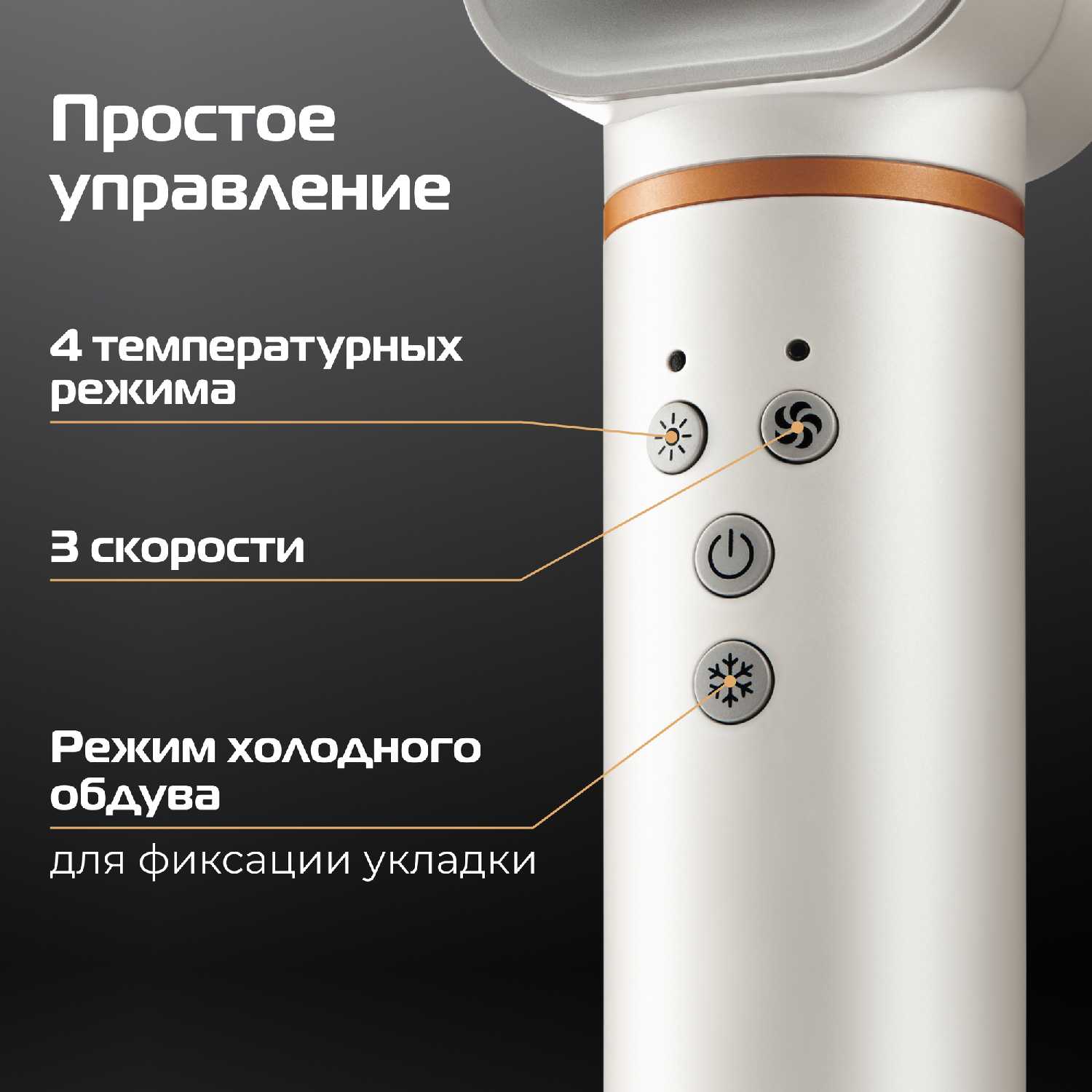 - Равномерное распределение горячего воздуха обеспечивает бережную сушку без пересушивания концов, сохраняя естественную влажность волос.