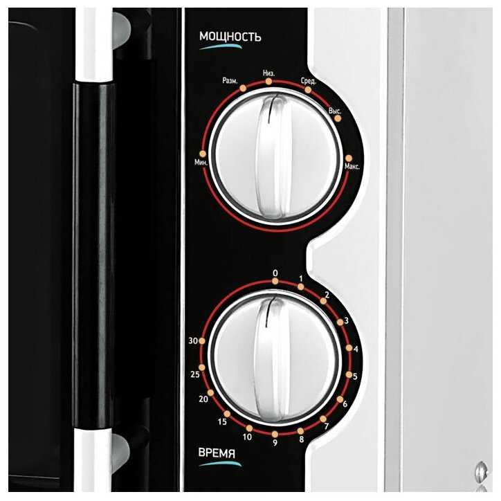 Эргономика управления и читаемость интерфейса: Механические регуляторы времени и мощности получают положительные оценки за интуитивность и тактильную обратную связь. Однако мелкий шрифт обозначений на панели управления неоднократно упоминается как недостаток, затрудняющий быстрое считывание параметров, особенно для пользователей с ослабленным зрением. Подсветка камеры активируется исключительно во время работы, а не при открытии дверцы — это отмечено как нелогичное, но некритичное конструктивное решение. Звуковая сигнализация реализована практично: устройство издает однократный сигнал ("дзынь") вместо продолжительного писка, что снижает раздражающий фактор.