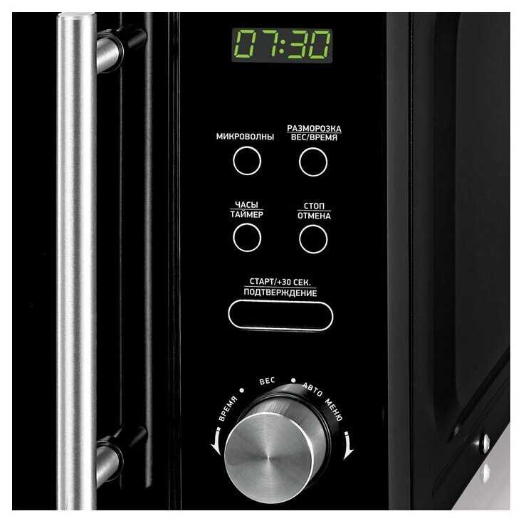 У этой микроволновки, на мой взгляд, это сделано через одно место. Поворот ручки направо - выбор режимов приготовления (Вот зачем их вообще в микроволновках делают?). Поворот ручки налево - выбор времени. НО!!! Начинается с 95 минут. Для выставления, например, секунд нужно повернуть ручку направо.