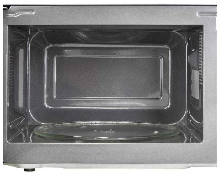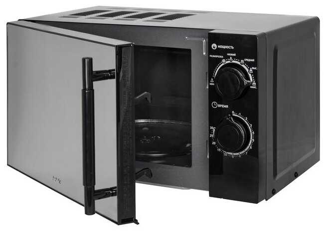 - + Шикарно выглядит, смотрится дороже цены. Работает стандартно, как и все микроволновки. Дверца зеркальная, сама печь с наружи чёрного цвета, внутри тёмно-серого цвета. Ручки управления удобные, шкала понятная(на русском языке).