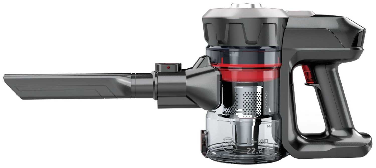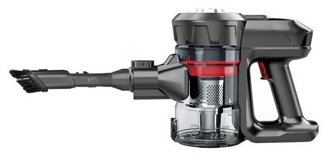 - Вес устройства около 2 кг с эргономичной ручкой обеспечивает управление одной рукой, включая уборку потолков и штор.