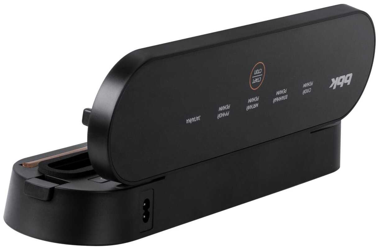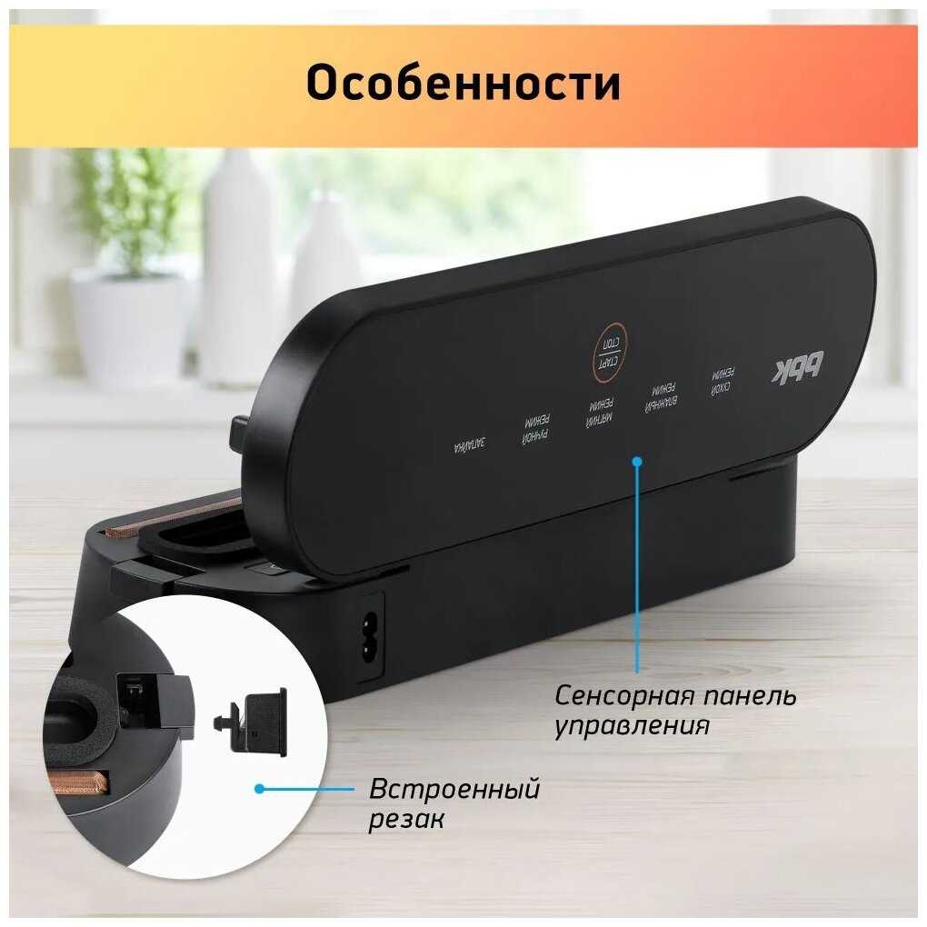Металлический нож в комплекте справляется с фирменными рулонами BBK, но требует аккуратности: его легко потерять (не фиксируется в корпусе), а срез не всегда получается идеально ровным. Некоторые предпочитают использовать обычные ножницы. -
