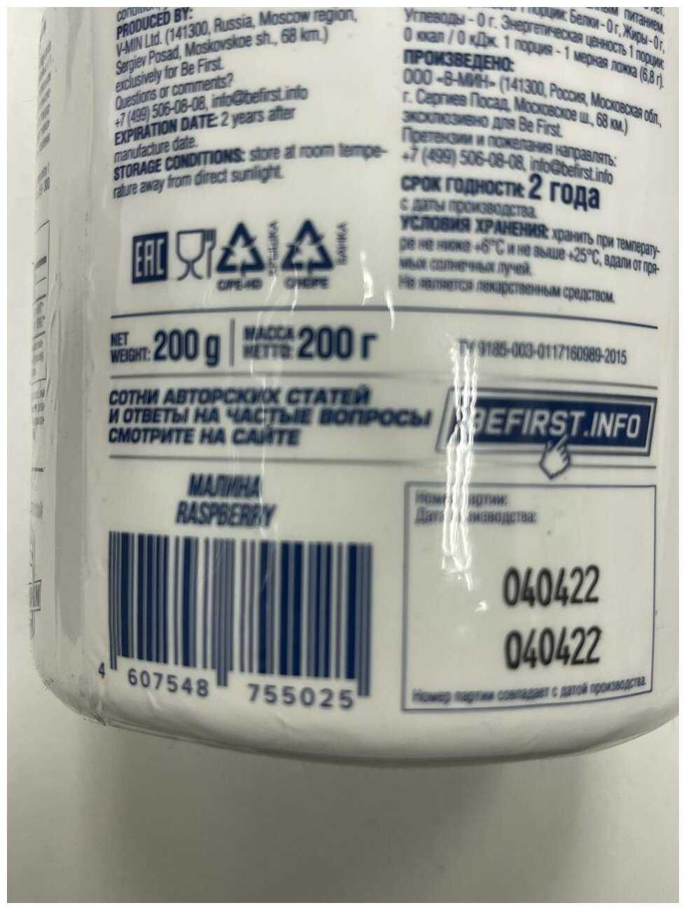 Диетические особенности : | без ГМО, без аспартама, без глютена, без мальтодекстрина |