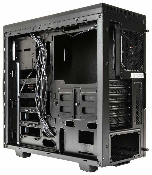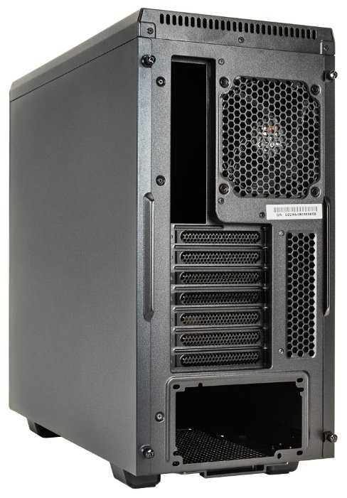 - + Качество изготовления: почти все детали прекрасно подогнаны, завальцованы и продуманы. Вентиляторы, и передний, и задний, стоят идеально, обеспечивая нормальный продув при сохранении уровня шума на очень низком уровне. Внутренние модули легко снять и переставить, например, убрав секции под привод и HDD (полностью или частично), чтобы поставить длинную видеокарту и ещё 1-2 вентилятора спереди на вдув.