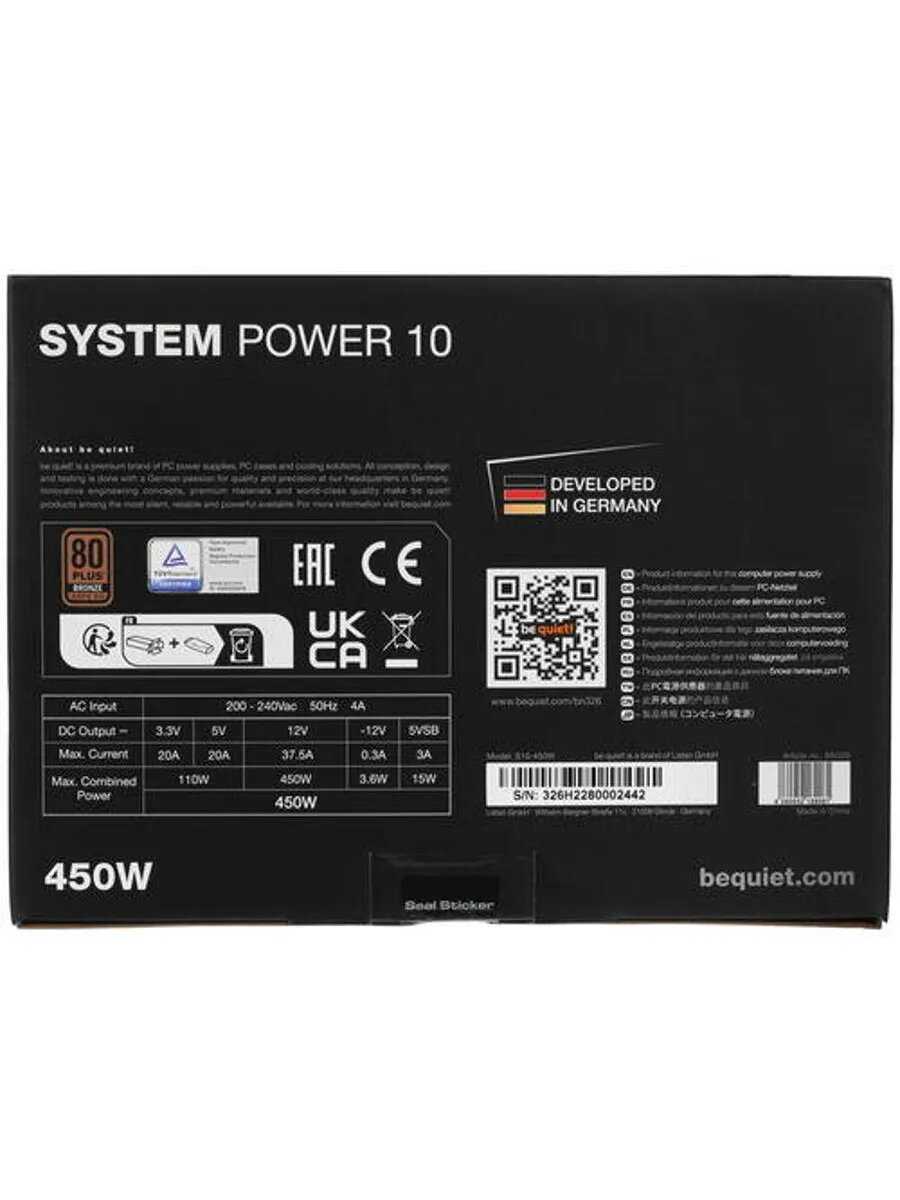 Лучшие цены сегодня на be quiet! SYSTEM POWER 10 450W (BN326)